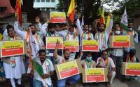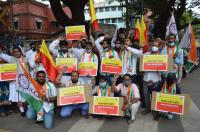 Members of Youth Congress stage protest for various demands at SBM Circle, in Bengaluru on Friday 26th September 2020