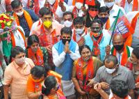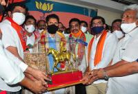 BJP Workers welcome new Gen Secreatary of BJP CT Ravi at BJP State Headquarters, in Bengaluru on Wednesday 30th September 2020
