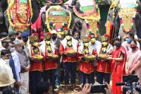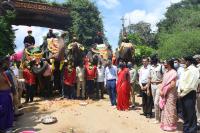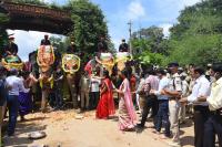 | Event Details: | DC Mysuru Rohini Sindhuri and others during Gajapayana the journey of first batch of Dasara elephants from their respective forest camps to Mysuru city, from Veeranahosahalli Gate on the outskirts of Nagarahole Reserve Forest at Hunsur taluk, in Mysuru on Thursday 1st October 2020 |