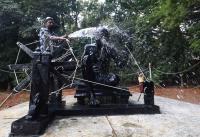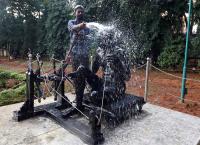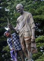 Worker cleaning Statues of Mahatma Gandhi ahead of Gandhi Jayanti at Gandhi Memorial park, in Bengaluru on Thursday 1st October 2020
