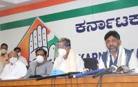 KPCC President DK Shivakumar and CLP leader Siddaramaiah addressing a press conference at KPCC office, in Bengaluru on Sunday 4th October 2020