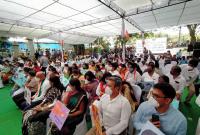 Congress leaders and workers during their protest against the Central Govt. at Congress Bhavan, in Bengaluru on Monday 5th October 2020