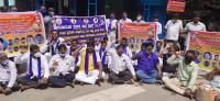 Dalit associations stage protest against UP Hathras Rape case at SBM circle, in Bengaluru on Wednesday 7th October 2020