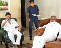 Former Minister and JD(S) MLA GT Devegowda meets KPCC President DK Shivakumar at his residence, in Bengaluru on Wednesday 7th October 2020