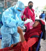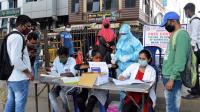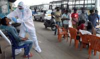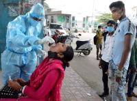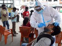A health worker takes nasal swab samples from people for COVID-19, in Bengaluru on Friday 9th October 2020