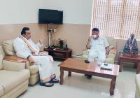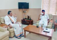 Former Minister Pramod Madhwaraj meets KPCC President DK Shivakumar at his residence, in Bengaluru on Friday 9th October 2020