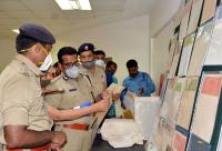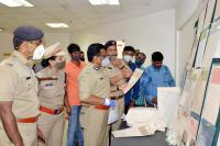 Police officials inspects the seized fake stamp paper which were seized by SJ Park Police Station Halasurugate Subdivision Central Division police during a press conference, in Bengaluru on Saturday 10th October 2020