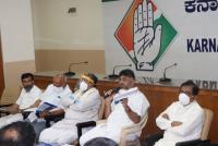 | Event Details: | KPCC President DK Shivakumar with CLP Leader Siddaramaiah, Congress Leader Dr G Prameshwara and others during a meeting on bye elections at KPCC office, in Bengaluru on Sunday 11th October 2020 |
