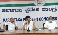 KPCC President DK Shivakumar with Congress Leaders Krishna Byregowda and Ravi at a meeting on bye-elections at KPCC office, in Bengaluru on Tuesday 13th October 2020