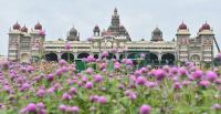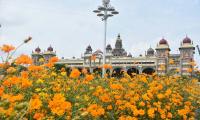 Blossomed flowers in the gardens of Mysore palace, in preparations for the upcoming Dasar festivities in Mysuru on Tuesday 13th October 2020