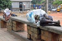 Homeless people napping on the stone benches at Bannappa Park, in Bengaluru on Tuesday 20th October 2020
