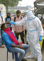 | Event Details: | A health worker wearing PPE kit collects samples for COVID-19 tests, for migrants workers at City Railway station, as authorities have increased testing as COVID-19 cases are on the sharp rise in the city for the past two weeks, in Bengaluru on Tuesday 20th October 2020 |