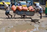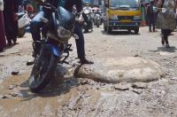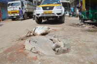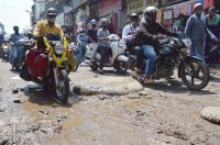 Potholes have been causing lot of problems to the motorists and the people at the busy Avenue Road, in Bengaluru on Monday 26th October 2020