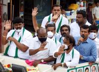 Former CM HD Kumaraswamy and JDS Leaders campaigning for Rajarajeshwari JD(S) candidate Krishna Murthy during Rajarajeshwari Nagar bye-poll, in Bengaluru on Saturday 31st October 2020