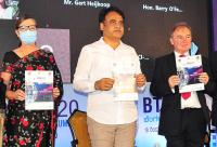 | Event Details: | DCM Ashwath Narayan with Jette Bjerrum, Consul General of Denmark, Jeremy Pilmore Bedford, UK Deputy High Commissioner and others releasing a brochure during a press conference on “Bengaluru Tech Summit 2020” at a private hotel, in Bengaluru on Monday 9th November 2020 |