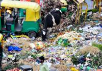 A cow eating garbage at KR Market, in Bengaluru on Sunday 22nd November 2020