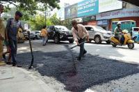 Potholes being filled at the busy St Marks Road, in Bengaluru on Monday 23rd November 2020