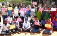 Aided school teachers staged a protest to fulfill their various demands at Freedom Park, in Bengaluru on Monday 30th November 2020
