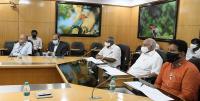 CM BS Yediyurappa with Minister Byrathi Basavaraju and BDA Chairman Vishwanath during a meeting on new parking system, in Bengaluru on Tuesday 1st December 2020