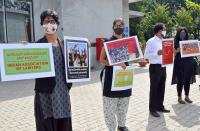 Advocates holding placards and raise slogans in solidarity with those protesting at Delhi borders over the new farm reform laws, in Bengaluru on Wednesday 2nd December 2020