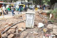 BWSSB work has been delayed and causing problems to the pedestrians at 18th Cross Malleshwaram, in Bengaluru on Thursday 17th December 2020