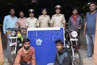 Accused Manjunath and Sudeep, who were arrested by Soladevanahalli Police in robbery case and recovered 12.5 Lakhs worth jewels, in Bengaluru on Friday 18th December 2020