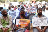 | Event Details: | Members of Bhima Korengav Horata Samiti - Karnataka holding placards and raise slogans during their protesting and demanding for justice, liberty, equality, fraternity release, in Bengaluru on Friday 1st January 2021 |