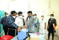 Minister of Health and Medical Education K. Sudhakar visits Yelahanka Public Hospital to inspects the COVID-19 vaccination dry run, in Bengaluru on Saturday 2nd January 2021