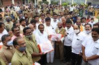 Minister K Goapalaiah distributed uniform clothes to Auto rickshaw and Tempo vehicle drivers at Mahalakshmi Layout, in Bengaluru on Monday 4th January 2021