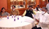 CM BS Yediyurappa and DCM Govind Karjol addressing the BJP MLAs meeting at a private hotel, in Bengaluru on Tuesday 5th January 2021