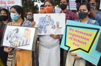 Members of Karnataka Students and Parents Forum raise slogans against the private school management and hike of school fees at Freedom Park, in Bengaluru on Sunday 10th January 2021