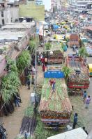 Sugarcane being stocked for Makar Sankranti Festival at KR Market, in Bengaluru on Monday 11th January 2021