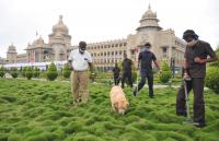 Bomb squad and sniffer dogs squad inspection at Vidhana Souhda premises ahead of Union Home Minister Amit Shah visit to Vidhan Soudha on 16th January, in Bengaluru on Thursday 14th January 2021
