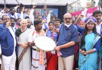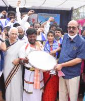 Members of Pragnaloka beating the drum to inaugurate "Matanadu Bharat Jai Bheem" unique protest at Freedom Park, in Bengaluru on Friday 22nd January 2021