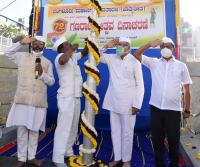 JDS supremo HD Devegowda with JDS leaders and workers the national flag on the 72nd Republic Day celebrations, in Bengaluru on Tuesday 26th January 2021