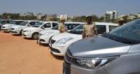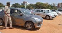Police personnel inspects 48 seized cars worth 4 Crore, were recovered by KG Halli Police personnel, in Bengaluru on Monday 1st February 2021