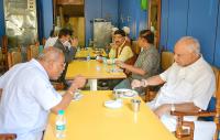 CM BS Yediyurappa had breakfast and coffee at a hotel with Minister Umesh Katti and MLC Vishwanath, in Bengaluru on Wednesday 10th February 2021