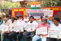 Supporters of Prof. KS Bhagawan protesting against attack on KS Bhagawan, in Bengaluru on Thursday 11th February 2021