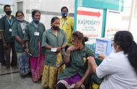 | Event Details: | Medic administers the dose of Covishield vaccine to a BBMP pourakarmika workers at Dasappa Hospital, during COVID-19 vaccination drive, in Bengaluru on Friday 12th February 2021 |