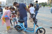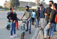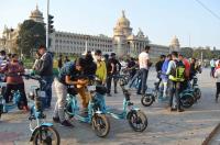 People seen riding Yulu bikes in front of Vidhan Soudha on a Sunday afternoon, in Bengaluru on Sunday 14th February 2021