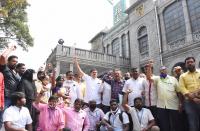 BBMP workers staging a protest at BBMP head office to press their various demands, in Bengaluru on Thursday 18th February 2021