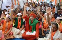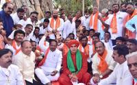 Sri Jaya Mrityunjaya Swamiji and Panchamasali community people staging dharan at Freedom Park demanding 2A reservation for Panchamasali community, in Bengaluru on Monday 22nd February 2021
