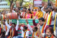 Members of Raitha and Karmika Rakshana Vedike staged a protest against the Central Government for Hike in LPG and Fuel prices, in Bengaluru on Wednesday 3rd March 2021