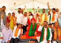 | Event Details: | Basava Jaya Mruthyunjaya Swamiji from Kudalasangama Panchamashali Peeta along with community members raises slogans during a sit-in-protest, demanding reservation for Panchamshali under 2A category, at Freedom Park, in Bengaluru on Wednesday 3rd March 2021 |
