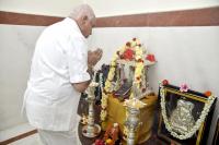 Chief Minister of Karnataka BS Yediyurappa performing pooja before going to present budget 2021 at his residence, in Bengaluru on Monday 8th March 2021