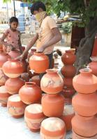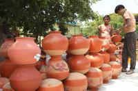 Mud pots in demand for water cooling in the blazing Summer at Nagarabhavi, in Bengaluru on Sunday 21st March 2021