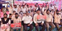 Members of Bharath Electronics Workers Union staged a protest against privatization of PSUs, in Bengaluru on Thursday 25th March 2021