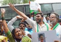 | Event Details: | Members of Bengaluru Central, South and North Zilla Congress Committee protesting and demanding to arrest of former Minister and Gokak MLA Ramesh Jarkiholi, in Bengaluru on Monday 29th March 2021 |