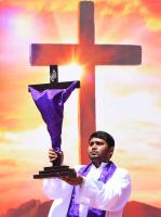 Christian devotees pray at St Marys Basilica Church, Shivajinagar to mark the Good Friday, in Bengaluru on Friday 2nd April 2021