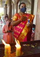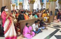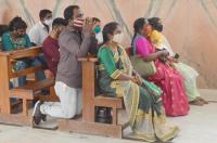 Christian devotees pray on the occasion of Easter at St Mary Basilica Church, Shivajinagar, in Bengaluru on Sunday 4th April 2021